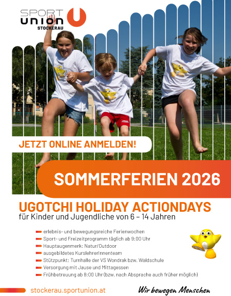 | Preis je Woche | EUR 200,- EUR 150,- für Mitglieder der SPORTUNION Stockerau Dieser Preis beinhaltet das gesamte Sport- und Erlebnisprogramm sowie die Verpflegung (Jause, Mittagessen, Getränke). |