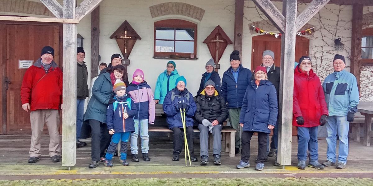 Bei feuchtem, nebeligem Winterwetter machten Rudi und Martin sich mit 16 wetterfest ausgerüsteten Personen auf den Weg zur letzten Wanderung dieses Jahres. Heute versuchten wir, vom Treffpunkt bei der Kapelle in Niederfellabrunn einen begehbaren Weg Richtung Karnabrunn zu finden. Nach kurzer Information über Besonderheiten des Ortes ging es über befestigte bis gatschige Feldwege zu einer schönen Jagdhütte. Dort gibt es bei klarem Wetter eine gute Fernsicht, heute hat uns der Nebel die Sicht versperrt. Nach der Rückkehr zur Kapelle warteten dort schon zwei musizierende Mädels die kleine Adventfeier bereichterten. Geschichten und Gedichtewurden vorgetragen, die von Veronika und Julia mit schöne Melodien begleitet wurden.
